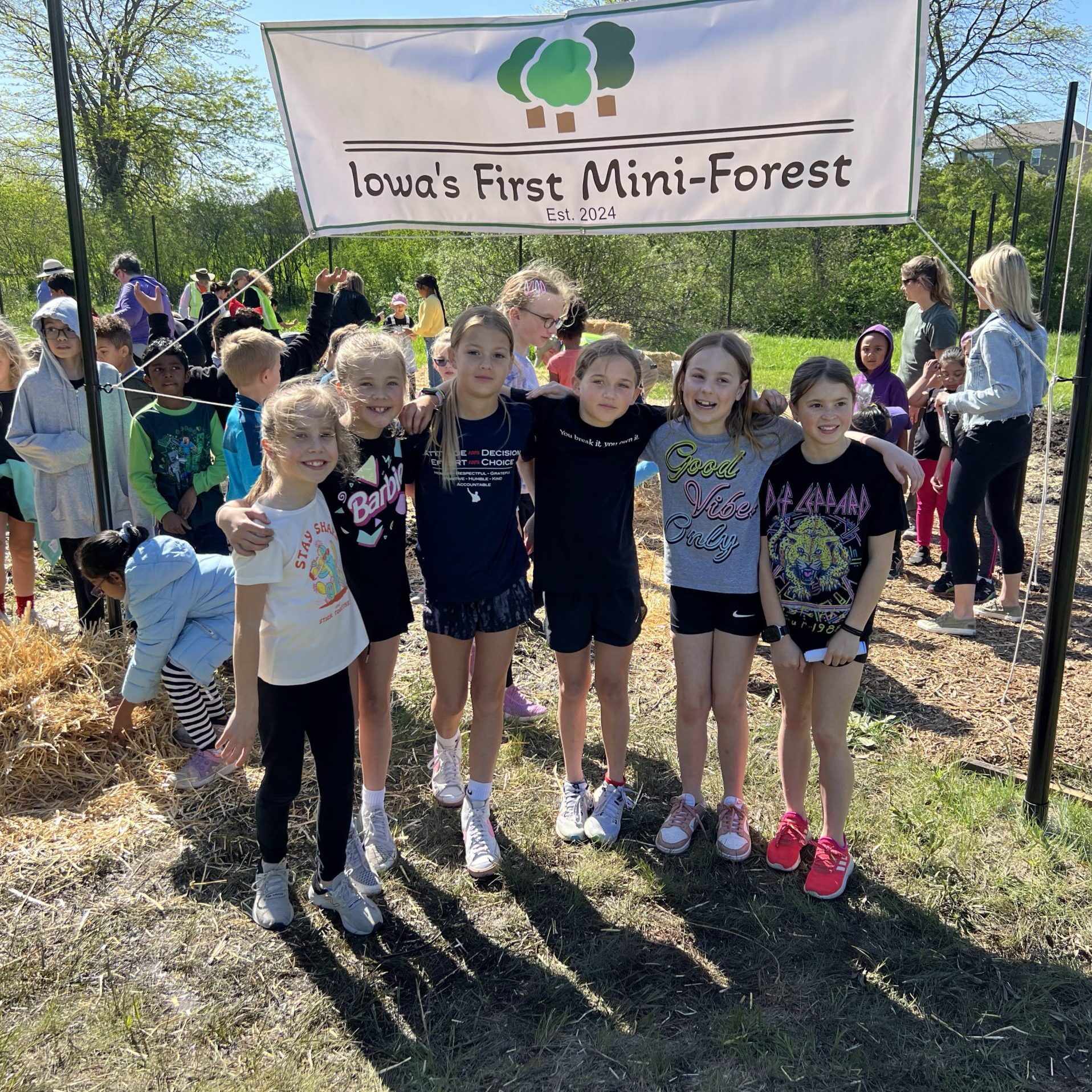 Our Brookview Mini Forest project would not have been possible without the combined help of our community. The Iowa Mini Forest project united 500 Brookview Elementary students for planting and mulching, Waukee APEX for logos, recruitment, signs, and donations, and ISU Forestry for research and lesson plans. As we continue to progress with the Brookview Mini Forest, we hope to see more volunteers join our Mini Forest Family!